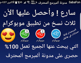 | تحميل ثلاث نسخ من تطبيق موبوكرام معربة لإستخدام ثلاثة حسابات في هاتفك |